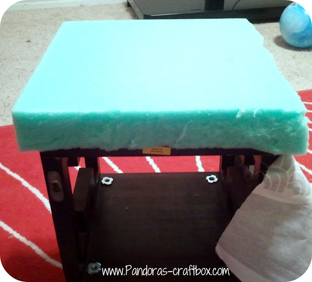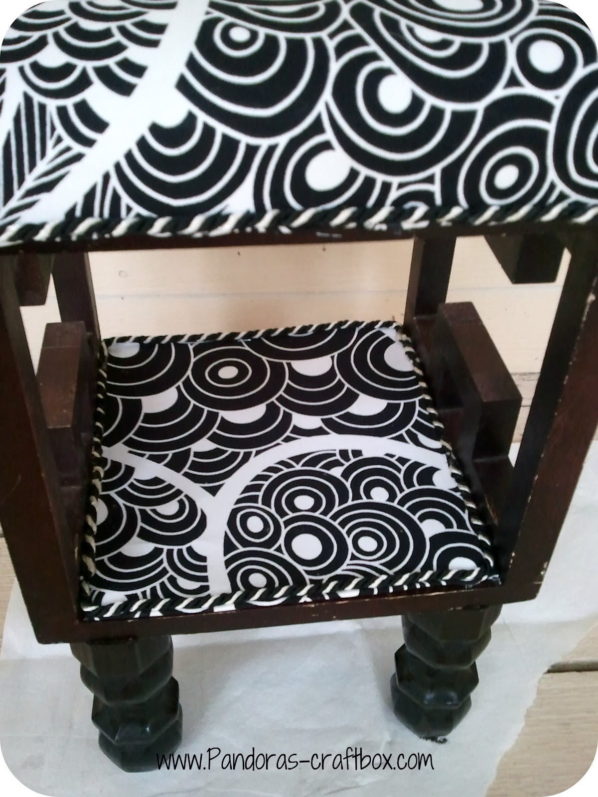 I hope you liked my journey from shadow box to footstool. Check out another reupholstering project.