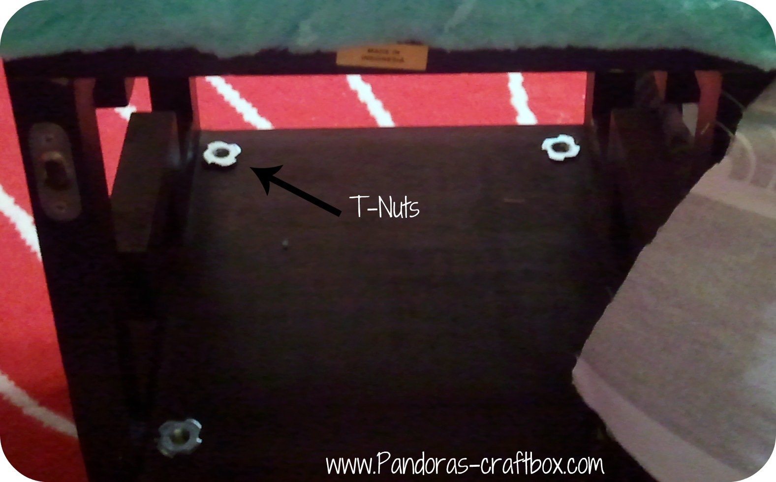 While doing this project I learned something new which was the thread rod extends. I was not told that by the associate. Don’t get me wrong I like the the HD associates and they are very helpful and knowledgeable but this little piece of information would have sped up the process. Another associate did recommend a T-nut to be used to hold the stool legs in place. I was so happy he recommended it, forgive the blurriness as i intended to take a better one but… well you’ll see.