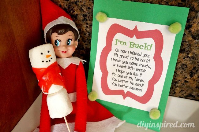 Day 1: Mia found our Elf with a little “I’m Back” poem. I wrote and printed it up. You can print this out too if you’d like.